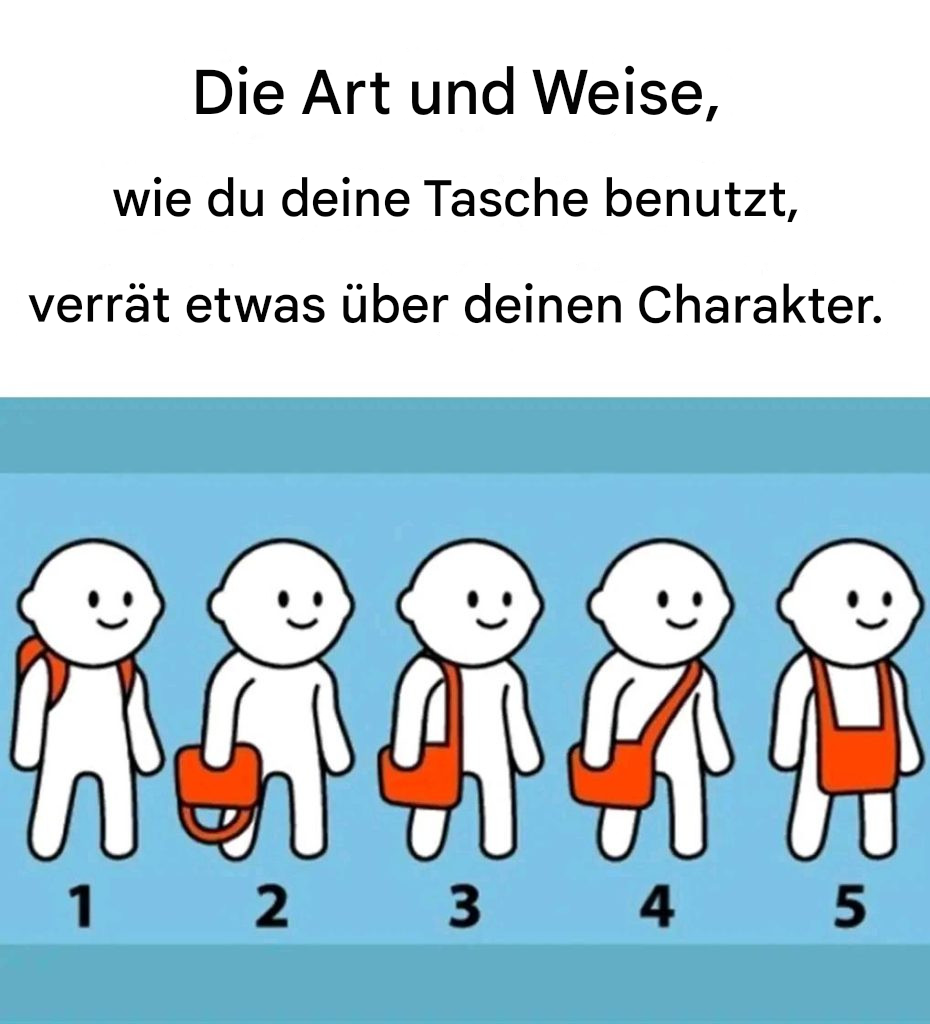 2. In der Hand tragen: Wenn Sie Ihre Tasche und andere Dinge gerne in der Hand tragen, deutet das darauf hin, dass Sie alles gründlich erledigen und die Kontrolle behalten möchten. Sie wollen immer informiert sein und zu allem eine Meinung haben. Sie sind direkt, aber auch zuverlässig.
