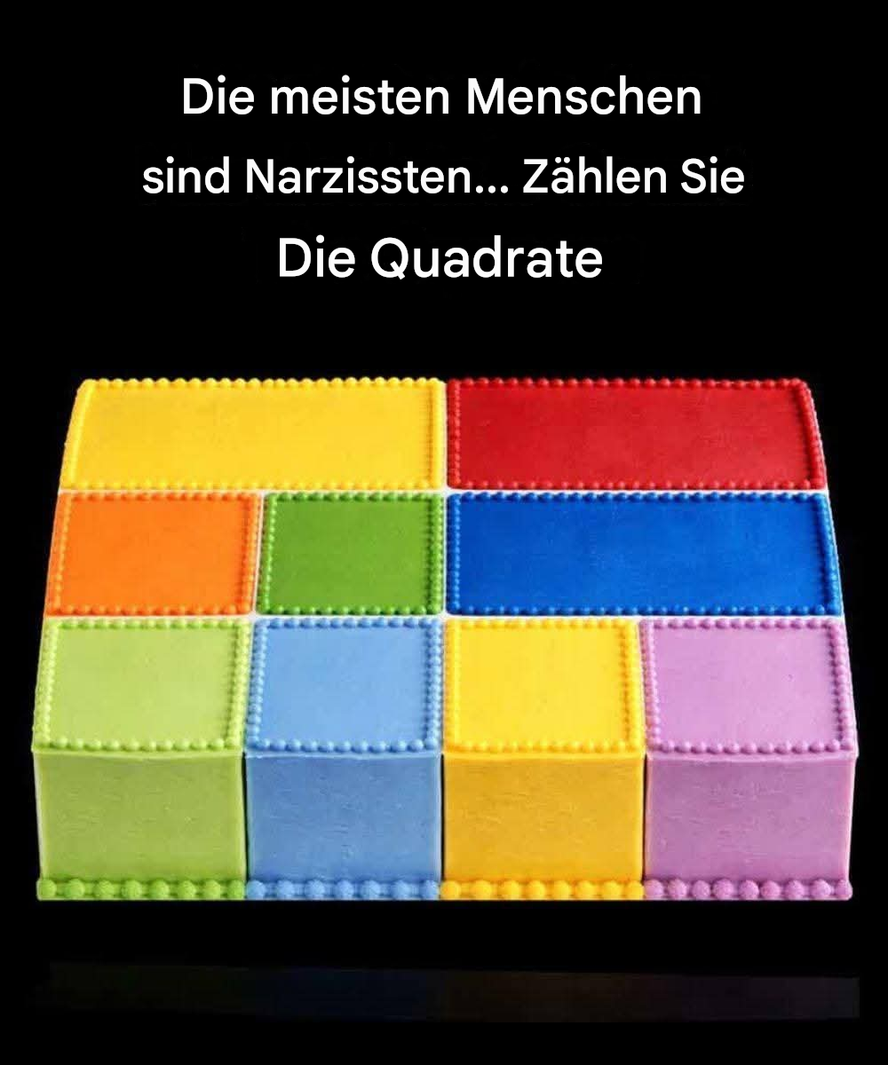 Die Bildunterschrift lautet: „Die meisten Menschen sind Narzissten … Zähle die Quadrate.“ Es wirkt wie ein spielerisches Rätsel – zähle die sichtbaren Quadrate und schau, welche Zahl du erhältst. Doch hinter dieser Oberfläche verbirgt sich etwas Tiefgründigeres über Wahrnehmung, Aufmerksamkeit und sogar das Ego.