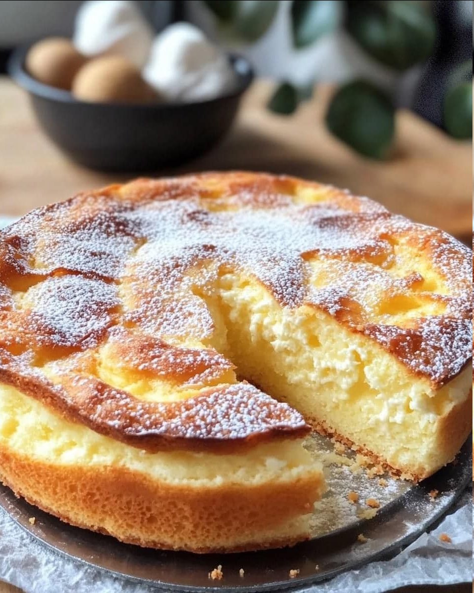 Dieser Kuchen ist ein wahres Meisterwerk der Einfachheit. Es sind keine komplizierten Techniken oder schwierige Zutaten erforderlich – alles, was Sie brauchen, ist ein wenig Geduld und die richtige Technik. Nach dem Backen kommt der Moment der Magie, wenn der Kuchen sich in einer goldenen Kruste präsentiert, die perfekt mit der weichen, fast schmelzenden Innenstruktur harmoniert. Der Kuchen lässt sich hervorragend mit Puderzucker bestreuen, was ihm einen eleganten Touch verleiht und gleichzeitig den Geschmack abrundet.