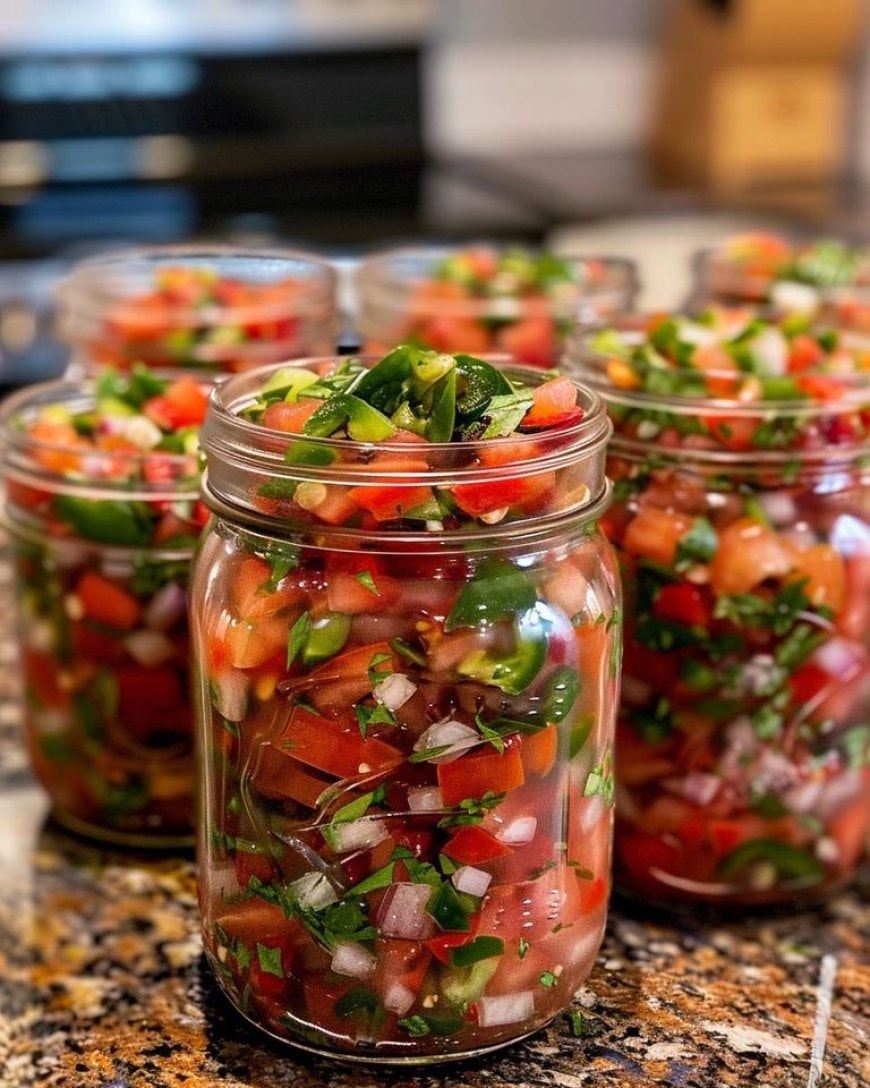 Glas verleiht Ihrem Tisch nicht nur einen Hauch von rustikalem Charme, sondern bietet auch eine einfache Möglichkeit, den Pico de Gallo aufzubewahren und frisch zu halten. Ganz gleich, ob Sie Ihr gegrilltes Fleisch aufpeppen oder einfach nur Ihre Chips aufpeppen möchten, Pico de Gallo bringt alle zusammen und sorgt für einen frischen Bissen Geschmack!Obst und Gemüse