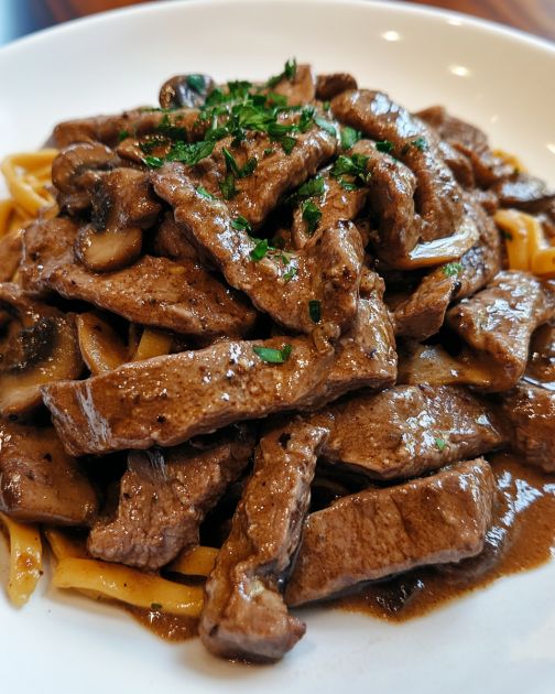 Cremiges Rindfleisch Stroganoff aus dem Slow Cooker