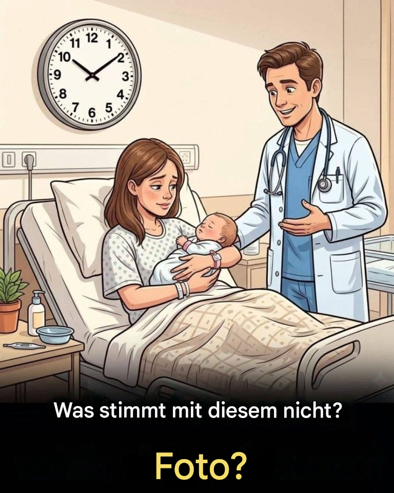 Rätsel erinnern oft an komplexe Gleichungen oder Logikgitter – doch nicht alle erfordern Berechnungen. Manche basieren auf etwas viel Fundamentalerem: der Fähigkeit, das, was vor einem liegt, wirklich wahrzunehmen. Betrachten wir zum Beispiel dieses scheinbar gewöhnliche Bild: ein ruhiger Kreißsaal. Eine junge Mutter wiegt ihr Neugeborenes im Arm, ein Arzt steht daneben, die medizinischen Geräte sind ordentlich angeordnet und eine Uhr hängt an der Wand. Auf den ersten Blick wirkt alles vollkommen normal – genau so, wie man es nach einer Geburt erwarten würde. Doch schauen Sie genauer hin. Eine subtile Anomalie ist offensichtlich – so klein, dass die meisten sie beim ersten Hinsehen übersehen. Ist sie Ihnen aufgefallen? Der Zeiger steht auf der Wanduhr.