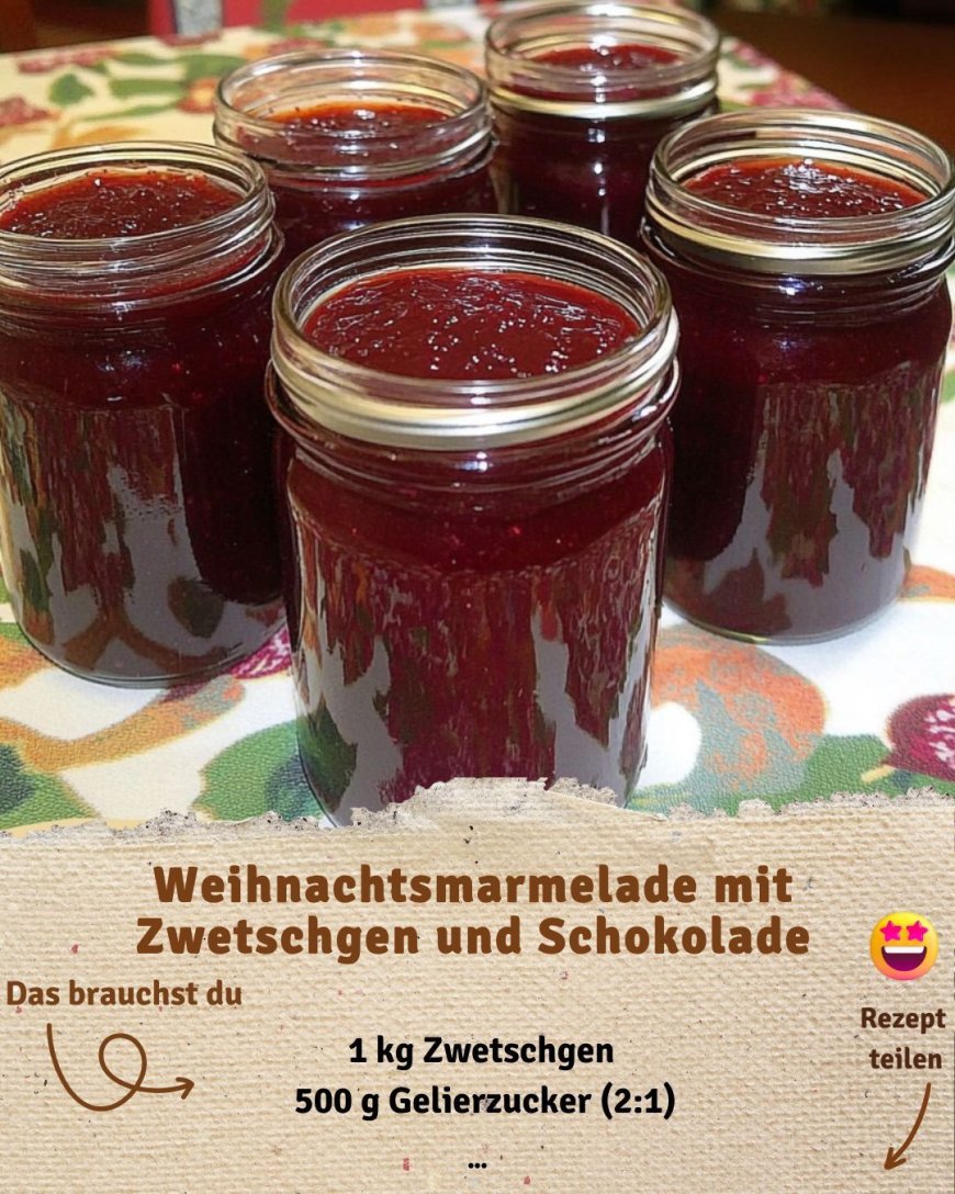 Wenn draußen die ersten Schneeflocken fallen und das Zuhause nach Zimt, Kakao und gebackenen Köstlichkeiten duftet, ist es Zeit für besondere Rezepte, die Herz und Seele wärmen. Diese Weihnachtsmarmelade mit Zwetschgen und Zartbitterschokolade bringt genau dieses Gefühl auf den Frühstückstisch – eine perfekte Mischung aus fruchtiger Tiefe, feiner Süße und winterlichen Gewürzen. Sie vereint traditionelle Aromen mit einem Hauch von Raffinesse und weckt Erinnerungen an Kindheitstage, Kerzenschein und gemütliche Adventsabende.